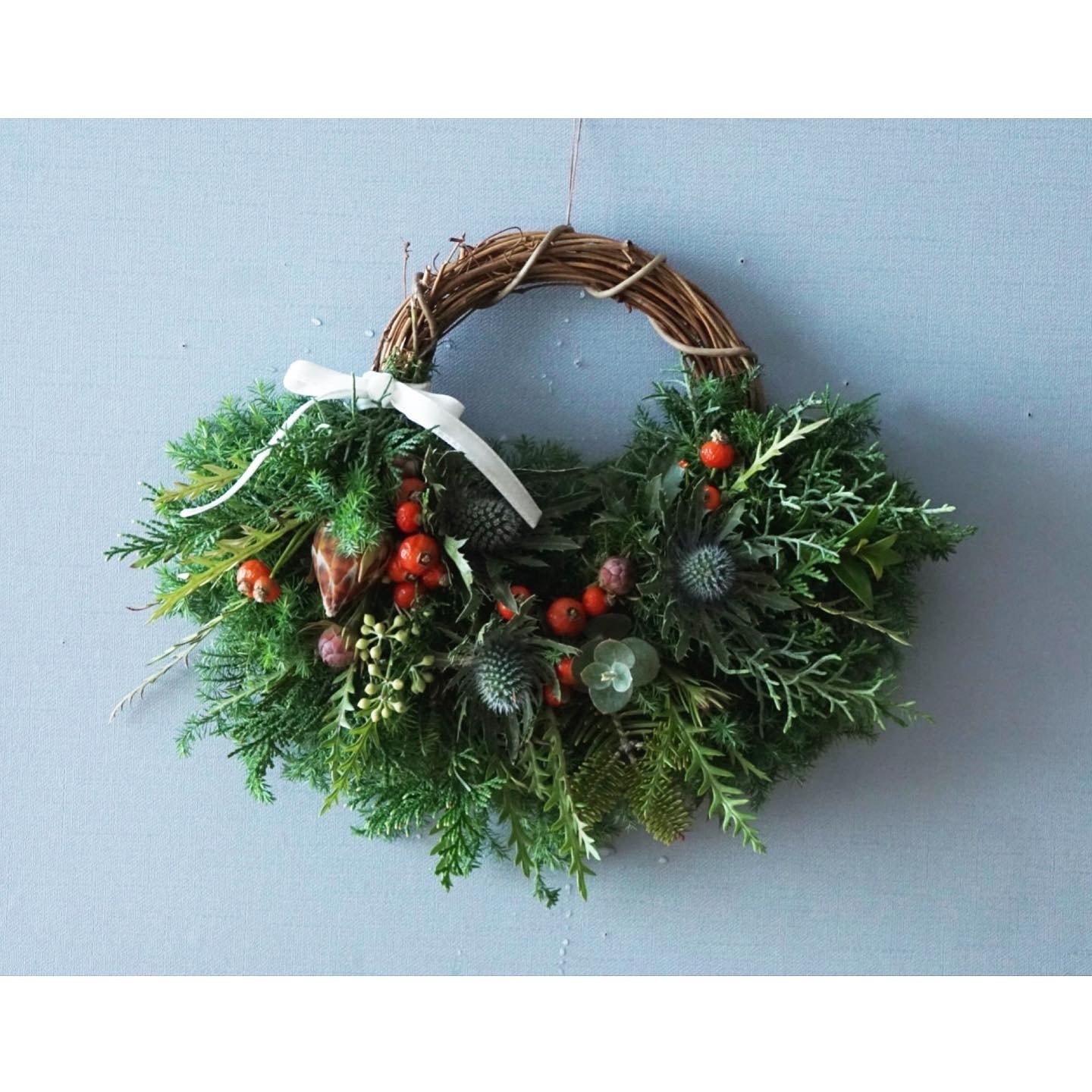 クリスマスを過ぎてもドライフラワーリースとしてそのまま飾っていただけます