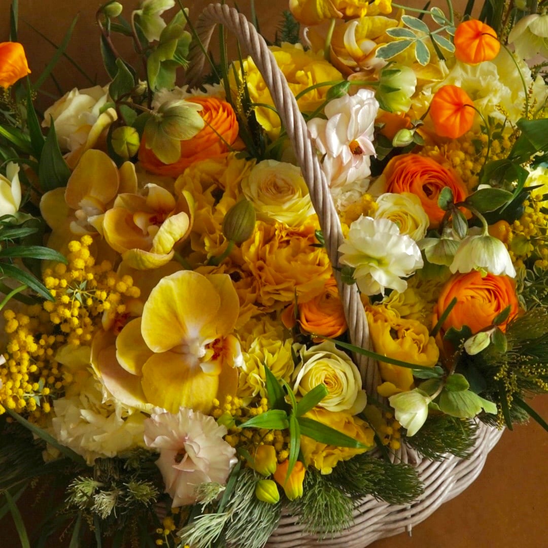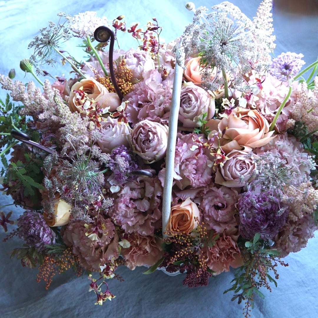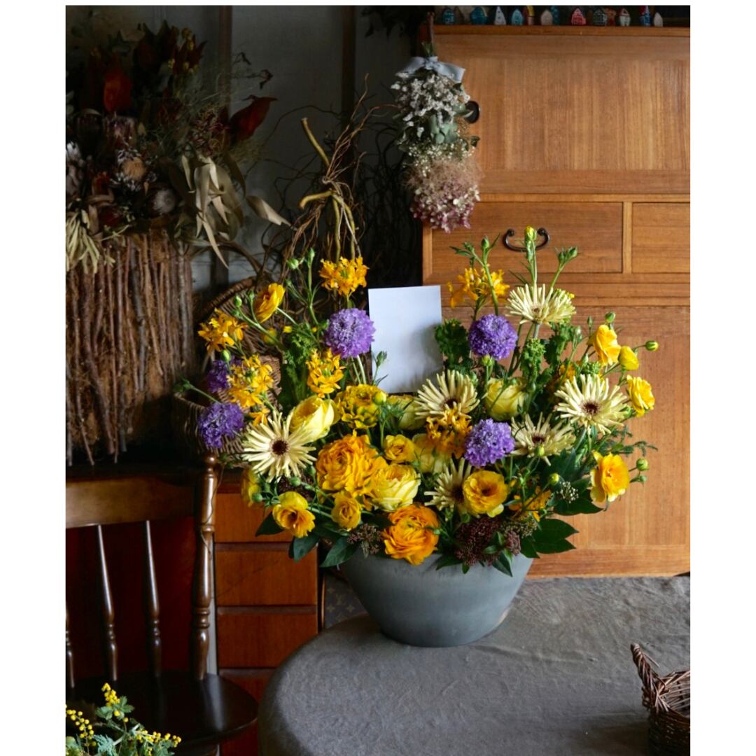 花材はその時の旬なお花でアレンジいたしますので、お写真との相違はご了承くださいますようお願いいたします