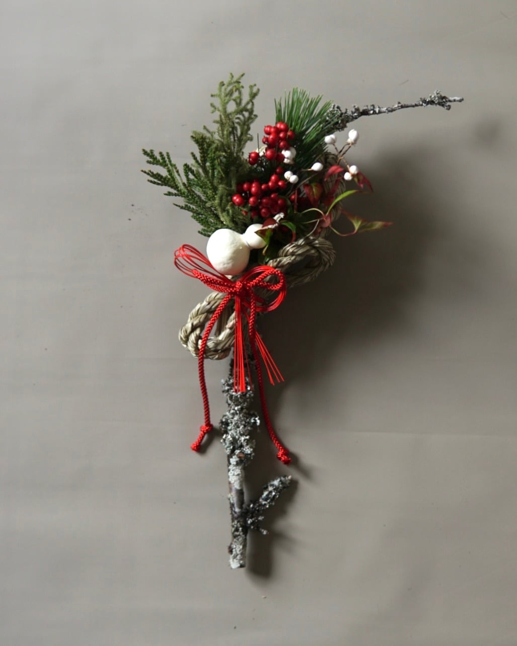 南天の実や苔朴、松、ナンキンハゼなどでお作りしております