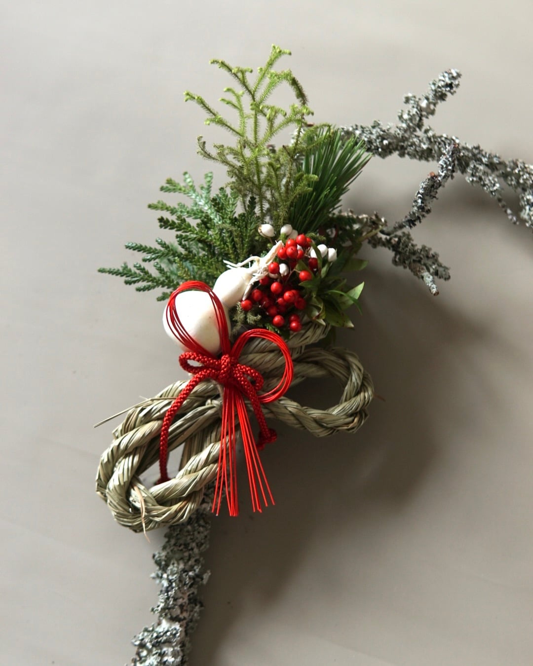 南天の実や苔朴、松、ナンキンハゼなどでお作りしております