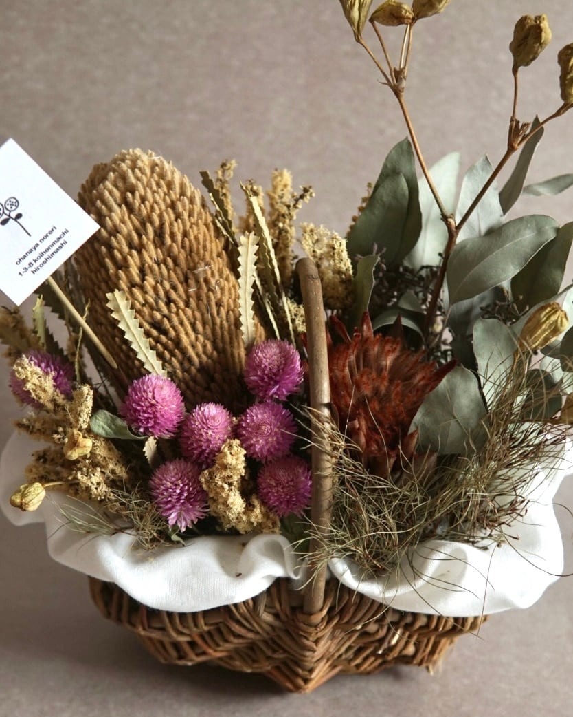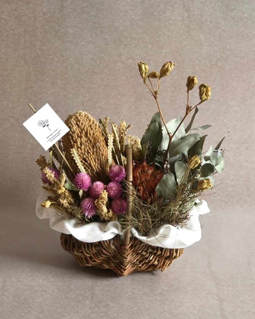 母の日などに:ドライフラワーバスケットアレンジA