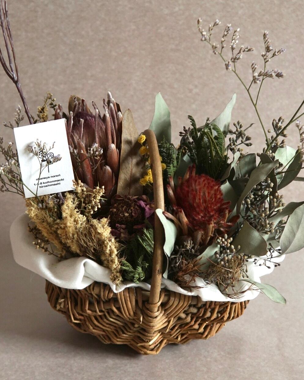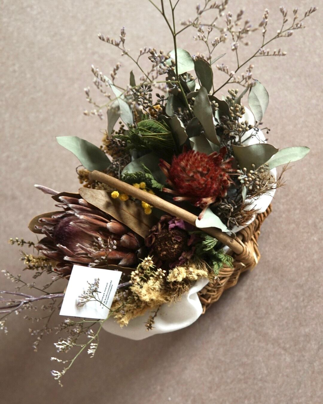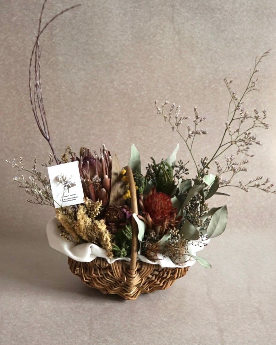 母の日などに:ドライフラワーバスケットアレンジC