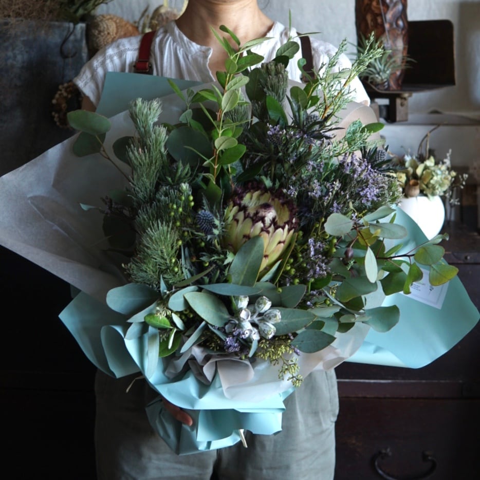 ブーケのようにラッピングしますので、渡すときはブーケとして、受け取った方はスワッグとしてお部屋に吊るして飾って頂けます